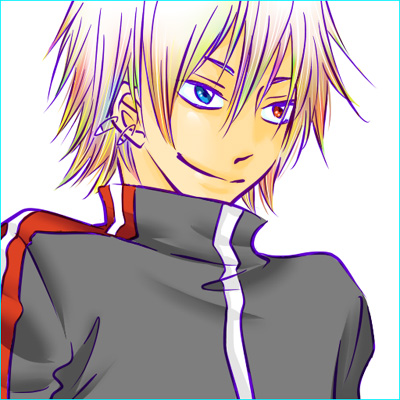 一度は描いてみたくなる虹色の髪の毛戌井。ぼかしたら赤みが強めに残ったなぁ…